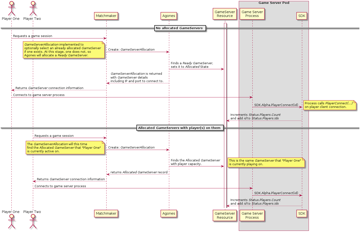 GameServer that has room for a specific number of players.Using this approach, we are able to be able to make an Allocation request that is akin to: “Find me a GameServer